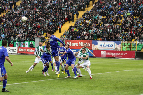 Обидві команди почали гру без особливої розвідки. І небезпечні моменти не забарились. Першим міг відзначитись досвідчений Шевченко, який, увірвавшись до штрафного, пробив повз Богатінова, але влучив у ближню стійку. М’яч відскочив знову до Шевченка, але його удар у підкаті заблокував Балажіц і все закінчилось кутовим.