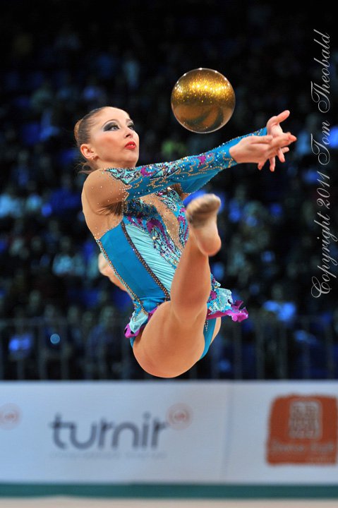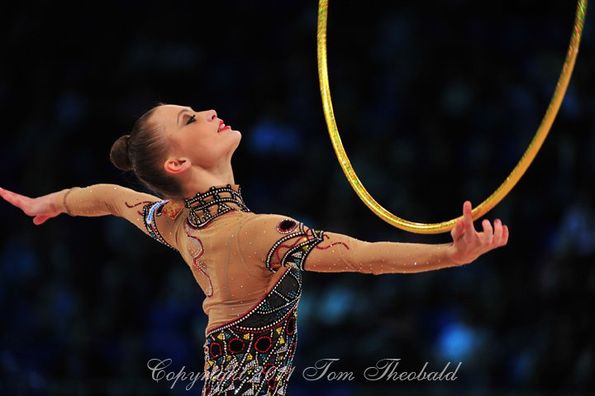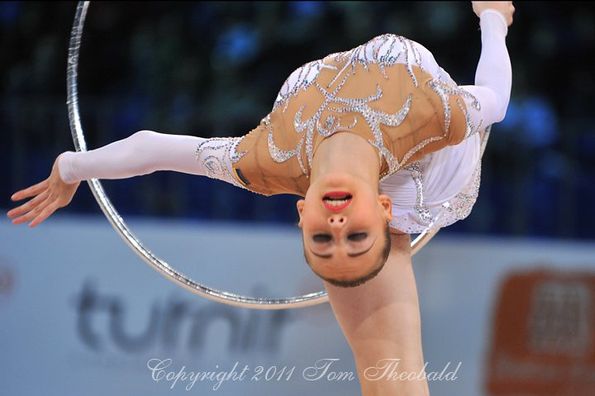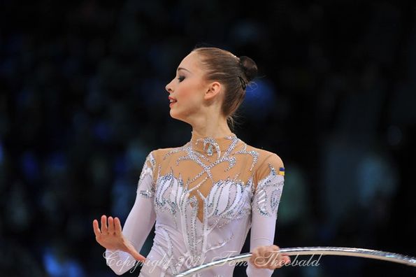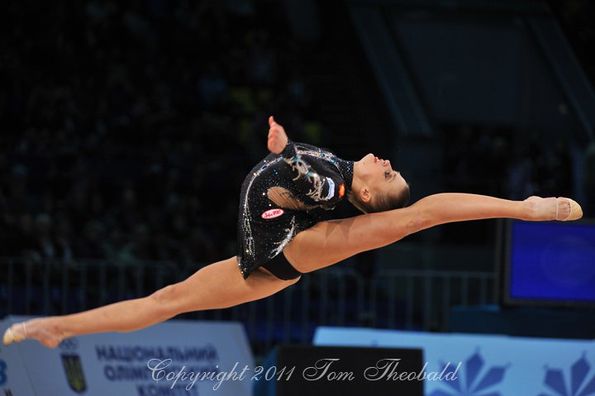 А теперь – перейдем к украинским персоналиям. Как известно, в финальный день наиболее удачной «золотоискательницей» стала наша Алина Максименко, выигравшая три отдельных вида из четырех. У тех, кто не видел соревнования, могло возникнуть подозрение: дескать, тут, наверное, не обошлось без помощи судей. По сему поводу скажу лишь одно: тот, кто так подумал, тысячу раз НЕПРАВ. В трех финальных упражнениях – с обручем, булавами и лентой – Алина выступила просто прекрасно. Она практически не уступала той же Кондаковой в сложности программы, а в плане артистизма выглядела даже более ярко. Имевшие место в начале сезона „творческие муки” спортсменки и тренеров в поисках наиболее выиграшных композиций, похоже, увенчались успехов. Каждое из четырех упражнений Алины – это настоящий маленький спектакль. Мне кажется, у Максименко есть все шансы на предстоящем чемпионате Европы (он пройдет в конце мая в Минске) бороться за медали. Но, конечно, только при условии ЧИСТЕЙШЕГО исполнения. Все-таки стабильности Алине пока не хватает. Так, в Киеве она допустила грубые ошибки в упражнении с булавами (в день квалификации) и в финальном выступлении с мячом. Но в целом приятно отметить, что в исполнительском стиле Максименко присутствуют все лучшие черты украинской гимнастической школы – отменная хореографическая выучка, музыкальность, выразительность и образность каждого движения.