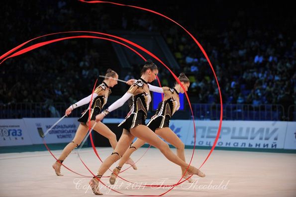 Несколько слов о финальных соревнованиях «групповичек». В отдельных видах наша команда (в ее составе выступали Виктория Ленишин, Алена Дмитраш, Светлана Прокопова, Анастасия Шихарева, Евгения Гомон и Валерия Гудым) завоевала серебро (2 обруча + 3 ленты) и бронзу (мячи). А в многоборье, напомню, была третьей – после Италии и Белоруссии. Команда России, как уже отмечалось в предыдущих репортажах, в Киеве выступала вторым составом и в распределении наград участия не принимала. Итальянки же и белоруски были представлены в полную силу. А обе эти команды, подчеркну, входят в мировую элиту.