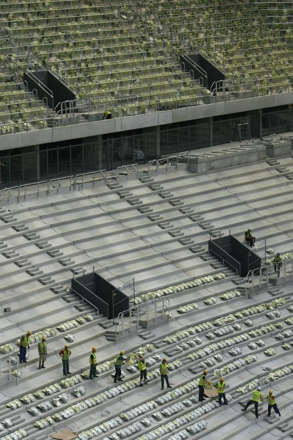 Сейчас на стадионе монтируют кресла – уже установлено 11 тысяч, конструкции для больших телеэкранов и систему подогрева газона. Дренажная система поляны уже установлена.