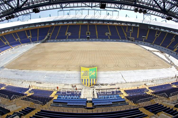 Подошли иностранцы к работе со всей серьезностью: сначала разработали проект, который бы учитывал все особенности украинского климата, тщательно отобрали все материалы для этого, а затем приступили к его выполнению. Надо сказать, в проекте задействованы сразу 5 национальностей: британцы, ирландцы, чехи, словаки и, конечно, украинцы. Каждый занимается своей работой и, стоит отметить, темпы и качество работ по-хорошему удивляют. Чуть более чем за месяц профессионалы успели полностью убрать предыдущий газон и все его составляющие, установить системы аэрации, подогрева, полива, дренажа и даже засеять траву.