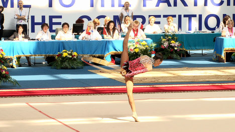 Сегодня состоятся финалы в групповых упражнениях (5 мячей, 2 обруча + 3 ленты), индивидуального первенства среди юниоров и сеньоров.