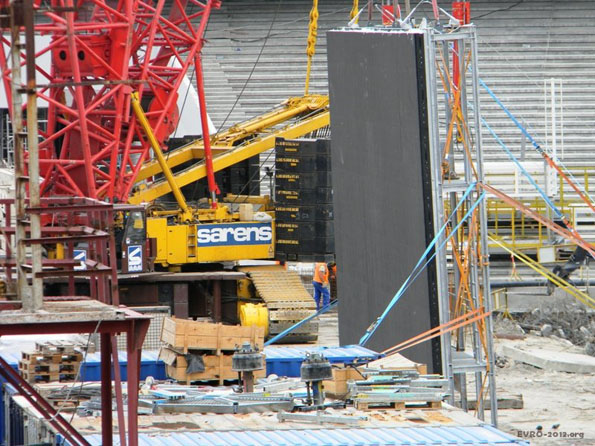 Табло главного стадиона Евро-2012 будут наибольшими видеопанелями, установленными на стадионах Украины, и одними из крупнейших в Европе. Вес каждого табло вместе с монтажной конструкцией составит 9,5 тонн.