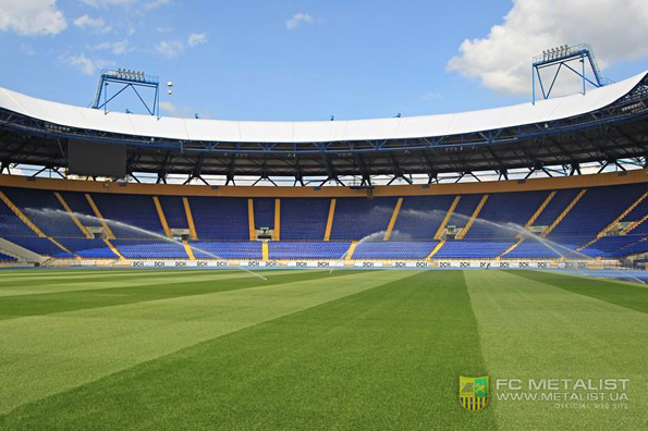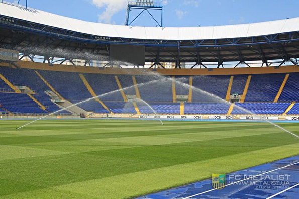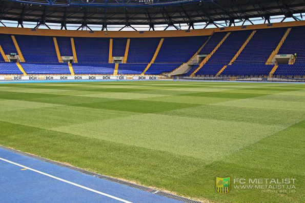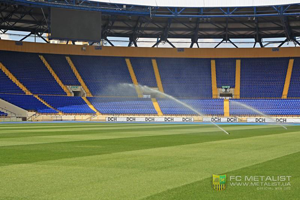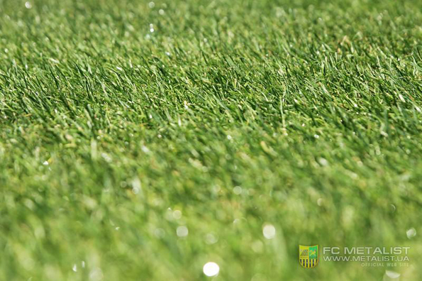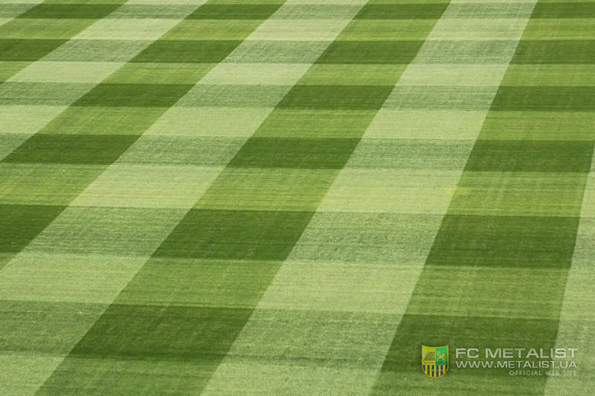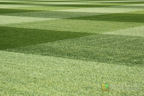 Представляем вашему вниманию фотографии газона ОСК Металлист, который медленно, но верно продвигается к намеченной месяцами ранее цели – стать лучшим. Траву ежедневно поливают и стригут, а также для ее хорошего роста было применено удобрение – это на данный момент все, что ей необходимо для лучшего существования.