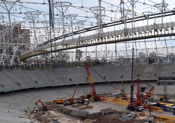 Прожекторы устанавливаются под крышей стадиона + ФОТО