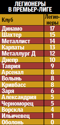 Единственный клуб украинской Премьер-лиги, у которого вообще нет легионеров. «Нас финансирует завод, приобретать высокооплачиваемых легионеров у клуба возможности пока нет, — объясняет главный тренер команды Сергей Ковалец. — Не исключено, что она появится в будущем. Клуб развивается постепенно. У нас есть свой стадион, детская школа. И на данный момент политика клуба — строить команду из украинских игроков. А когда свои показывают хорошую игру и результаты, за них болеют еще больше. Вспомните киевское «Динамо» Лобановского конца 90-х. Тогда играли одни украинцы плюс два белоруса и грузин».