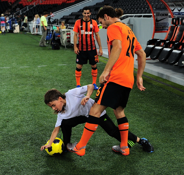 Работа на съемочной площадке продолжалась до полуночи. Все пребывали в отменном расположении духа. Естественно, львиную долю настроения им прибавила важная победа над «Днепром», ну и, конечно же, активное подбадривание болельщиков: «Ракицкий, не улыбайся!», «Дарио, соберись!» - требовательно подошли к процессу донецкие фаны.