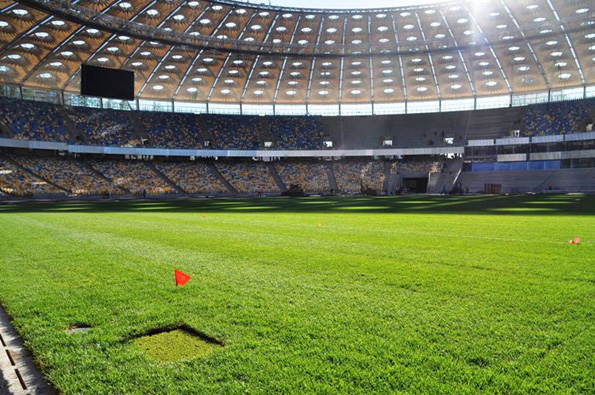 Укладка газона на главной арене Евро началась 7 сентября и должна завершиться в ближайшие дни. Чтобы вырастить поле «Олимпийского», понадобилось более двух лет, а вот расстелют его менее, чем за неделю. За день планируется укладывать от 1200 до 1500 квадратных метров натурального покрытия. По словам специалистов, для укоренения газона потребуется около двух недель, после чего поле будет готово для проведения на нем футбольных матчей.
