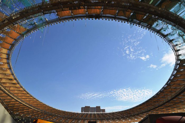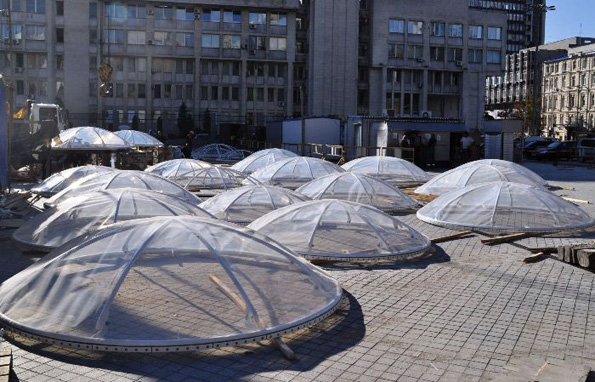 Вместе с тем завершается эпопея с установлением покрытия над ареной - одного из крупнейших в Европе и мире. Сегодня тут смонтировано 70 секторов из 80. Установлено также 224 прозрачных куполов на зонтики - всего их должно быть 640.
