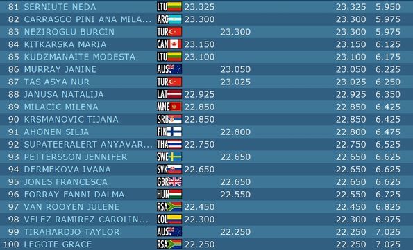 Итак, украинки сегодня выступали с обручем. Алина Максименко прекрасно справилась с упражнением, ее оценка – 27.775. Пока Алина идет третьей за азербайджанской гимнасткой Алией Гараевой (28.175) и израильтянкой Нетой Ривкин (27.800).