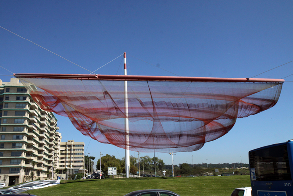 Возле набережной наш туристический взгляд все время волновала причудливая конструкция, напоминающая огромное сито. Википедия подсказала, данное архитектурное чудо известной американской художницы Жанет Эйхельман (She Changes) на городской площади символизирует границу городов Порту и Матозиньюш.