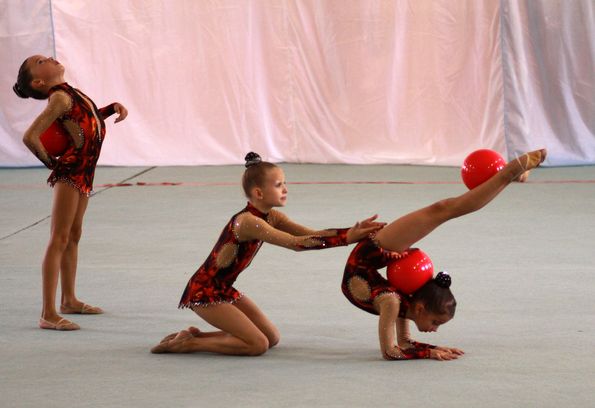 Групповое упражнение «пять мячей» в исполнении гимнасток второго юношеского разряда СДЮШОР «Черноморец»