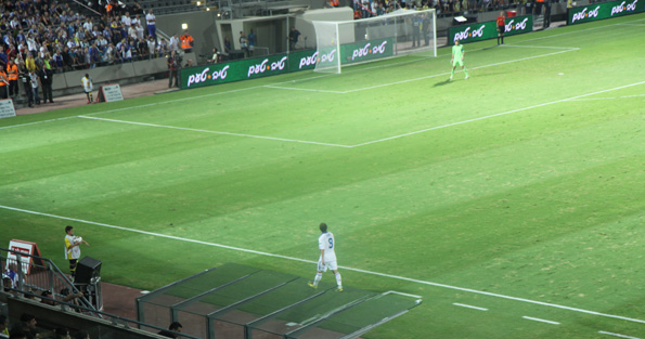 Тель-Авив. Домашний стадион местного «Маккаби» «Блумфилд Стадиум» и, как бы сказал известный в узких кругах украинский футболист: «Г’ебята, я была не в куг’се». Маленький по-европейским меркам стадиончик, вмещающий чуть меньше 15 тысяч человек, уже за час до матча(!) полностью заполнен. Радует глаз желто-синий цвет, но это, увы, не в нашу честь. Здесь болеют за «Маккаби», болеют неистово, задорно, до мурашек, не останавливаясь ни на минуту, даже если любимая команда уже на 4-й минуте уступает, как в счете, так и по игре.
