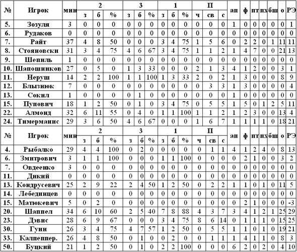 Записал сегодня вторую победу в свой актив и запорожский «Ферро-ЗНТУ», переигравший на выезде дебютанта сезона – «Черкасские мавпы». Гости сразу же влились в игру очень активно, спустя пять минут после начала матча баскетболисты «Ферро» имели преимущество в десять очков – 8:18. Ощутимый вклад в этот гандикап внесли Шаппел и Рыбалко. Во второй четверти к результативным действиям партнёров по команде присоединились Девис и Гуин. Первый активно действовал под щитом, то и дело не оставляя никому шансов в «краске», забирая все отскоки, а второй с неплохим процентом атаковал из-за дуги. На протяжении большей части игрового времени игрокам «Ферро» удавалось удерживать соперника на расстоянии в 12-8 очков, возобновить интригу хозяева паркета смогли лишь в третьей четверти. Стояновски, Тимерманис и Олмонд не только сократили отставание, но и вовсе вывели черкащан вперёд. Точный дальний бросок Войдана Стояновски сделал счёт 45:44 в пользу «мавп», но уже в следующей атаке Кондрусевич отплатил хозяевам паркета той же монетой – 45:47. Небольшая разница в счёте держалась до середины заключительной четверти. Подопечным Кирилла Большакова удалось додавить оппонента и свести матч к победе со счётом 79:93.