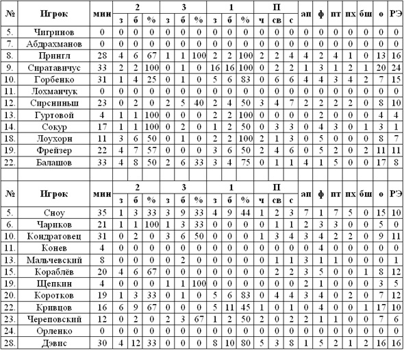 «Днепр-Азот» и «Кривбассбаскет» в очном противостоянии в Днепродзержинске во что бы то ни стало стремились добыть победу, ведь оба клуба ещё не испытывали вкус победы в текущем сезоне. Если криворожцы были биты лишь в одном противостоянии, то «Азот» вернулся дважды «на щите» с юга Украины, проиграв сначала МБК Николаев, а затем «Химику». Начали хозяева паркета с уверенного рывка 12:4, в котором особенно активно поучаствовали Фрейзер и Балашов. Днепродзержинцы чувствовали себя вполне уверенно вплоть до середины первой четверти, но сначала дальнее попадание Кондратовца, а затем две подряд удачные атаки из-под кольца Кривцова сделали счёт 16:17 в пользу «Кривбассбаскета». Ещё до первого короткого перерыва лидер менялся несколько раз, но всё же по истечении десяти минут игрового времени счёт на табло был 22:21 в пользу «Азота». Вторую четверть более уверенно начали гости. Броски из-за дуги Щепкина, Кондратовца и Череповского несли команду вперёд и увеличивали разницу в счёте, криворожцы сделали счёт 30:45 и, казалось, соперник может надломиться психологически, но произошло всё совсем наоборот. «Днепр-Азот» сделал ставку на атаку из «краски». Прингл и Балашов вполне удачно реализовывали лей-апы, а Сирутавичус то и дело натыкался на фолы, которые успешно и реализовывал. Первую половины соперники завершили с равным счётом – 47:47. В третьей четверти сценарий игры абсолютно не изменился. Команды по-прежнему не отрывались друг от друга в счёте, при этом, продолжая набирать большое количество фолов. Под занавес десятиминутки, в основном за счёт превосходства в борьбе под щитами, вперёд вышли хозяева – 71:63. Имели преимущество в 10+ очков «азотовцы» вплоть до середины заключительной четверти, но Сноу двумя дальними ознаменовал рывок своей команды. Когда оставалось играть менее 3-х минут, на табло был счёт 83:83, поэтому склонить чашу весов в свою сторону мог каждый из соперников. Крепче нервы оказались у подопечных Игоря Чигринова, а точнее у Гиттиса Сирутавичуса, который безошибочно атаковал с линии штрафных. Финальная сирена зафиксировала первую победу «Днепр-Азота» в новом сезоне со счётом 91:87.