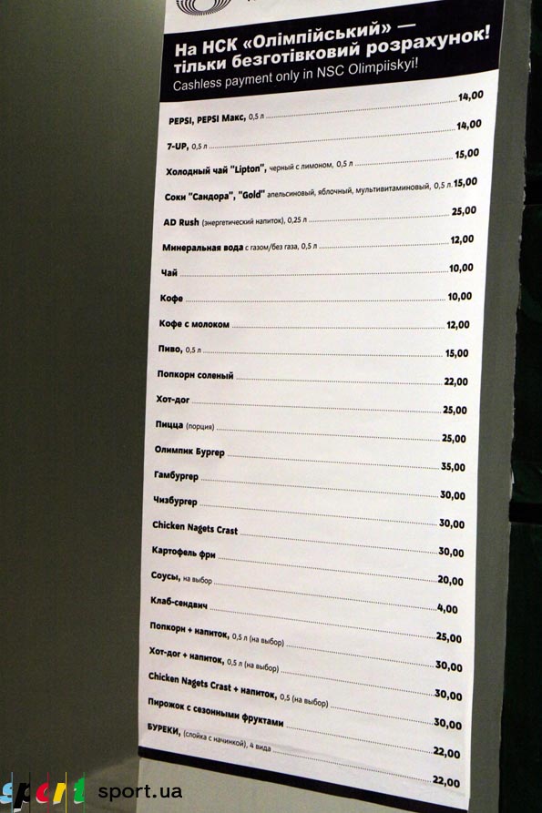 Далее, конечно, долгожданные фаст-фуды, чего не хватает на «Динамо», в микроскопическом виде реализовано на «Оболонь-Арене» и в полной мере воплощено в Донецке. Специальные карточки для расчета – это «ОК», персонал – подучится, меню – сойдет, цена – ни в какие ворота! Даже для Киева отдавать за хот-дог 25 гривен или 14-15 грн за «Пепси» или пиво ну это слишком большая роскошь! Вариантов развития может быть три – пить пиво и кушать ДО захода на стадион, не пить вообще, либо снизить цены в два раза. 65 тысяч болельщиков надеются на взаимопонимание :)