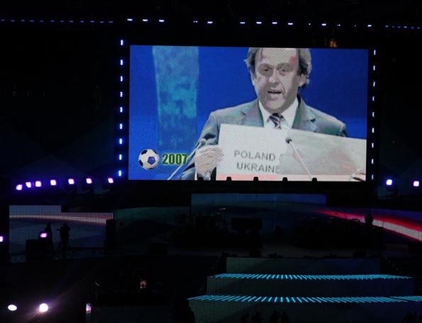 Лично меня больше «зацепили» документальные кадры об истории стадиона, легендарные победы киевского «Динамо» в 75-м и 86-м, табличка «Poland & Ukraine» в руках Платини – тут только слезы гордости и радости. А когда трибуны запустили волну и начали скандировать «Динамо», сразу же вспомнились 2000-2004-е года, когда матчи ЛЧ собирали по 90-100 тысяч человек…