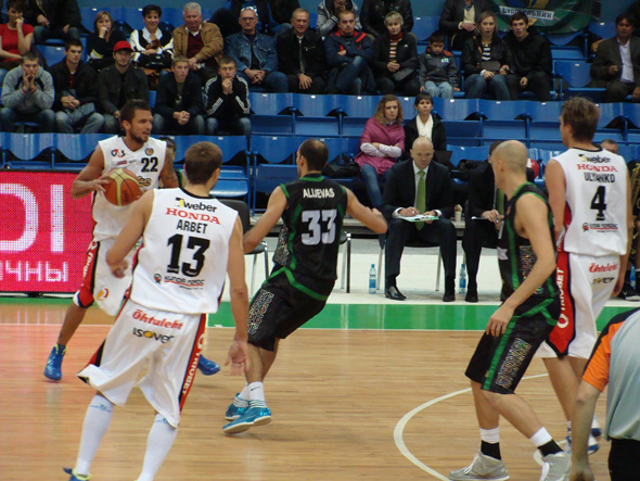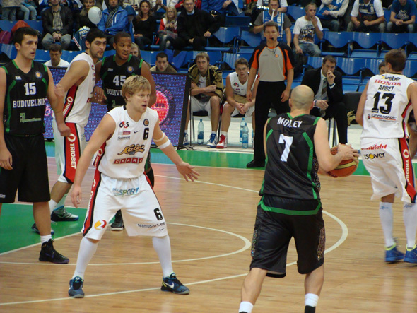 В рамках первого тура Единой Лиги ВТБ киевский «Будивельник» сегодня принимал эстонский «Калев». При чём «гладиаторам» предстоял поединок не в уже привычном зале СК «Меридиан», а на паркете Дворца Спорта, как оказалось, кольца которого не очень-то и домашние для подопечных Митровича. Открыть счёт набранным очкам удалось киевлянам, Андрей Малыш, после фола на нём, знакомого украинским любителям баскетбола Павла Ульянко, реализовал один бросок с линии штрафных. Забегая наперёд, отметим, что это был единственный игровой отрезок, когда «Будивельник» находился в роли лидера. В следующей же атаке гости ответили точным попаданием из-за дуги и вышли вперёд. После этого баскетболисты «Калева» лишь наращивали собственное преимущество, то и дело, поражая кольцо киевлян. Особенной активностью в первой половине дебютной четверти в составе чемпиона Эстонии отличались Шкеле и Варбанов, именно эти два игрока отлично действовали в трёхсекундной зоне хозяев паркета. Очередные два очка набранные Варбановым точным броском со средней дистанции, вынудили Митровича взять тайм-аут. После минутных наставлений в составе «гладиаторов» впервые в матче появились Алиевас и Морли. Дальнее попадание прибалта несколько сократило разницу в счёте, но впереди по-прежнему оставались гости – 8:14, тем более что уже в следующей атаке Арбет отплатил соперникам той же монетой – 8:17. С появлением в составе «Будивельника» Анисимова киевляне значительно прибавили в борьбе под щитами, но стоило Михаилу набрать несколько трудовых очков, как тут же броски Ульянко из-за дуги и игра Варбанова под щитом возобновляли уверенный гандикап эстонцев. Завершилась первая четверть десятиочковым преимуществом гостей – 13:23. Во втором периоде сценарий игры абсолютно не изменился, игроки «Будивельника» были абсолютно беспомощны в обороне, при этом демонстрируя сумбур в атаке. Постоянные потери наших баскетболистов, поспешность при розыгрыше мяча давали возможность Шкеле и Варбанову удерживать комфортное для «Калева» преимущество. Не радовал также процент попаданий киевлян, при чём «строители» не только не забрасывали из-за дуги, но и мазали половину фолов. В концовке четверти Андрей Малыш в двух атаках подряд сфолил на Ульянко, просто не успев за Павлом в ногах, а белорус записал на свой счёт три очка (реализовав 3 из 4) и сделал счёт 24:37. До конца первой половины соперники обменялись по одной результативной атаке и отправились в раздевалки при счёте 25:39 в пользу гостей. Третья четверть получилось для «Будивельника» по-настоящему провальной, на протяжении первых пяти минут хозяева паркета не могли набрать ни одного очка, в то время как эстонцы продолжали увеличивать разницу. Впервые в четверти поразить корзину гостей смог Денис Лукашов, совершив проход под кольцо, но сократить разницу никак не удавалось, Ульянко и Арбет с завидной точностью набирали очки. Когда разница в концовке десятиминутки достигла 21-го очка, стало ясно, что изменить что-то подопечным Митровича вряд ли удастся. Последний игровой отрезок, по сути, превратился в формальность, гостям необходимо было лишь удержать созданный гандикап, с чем эстонцы блестяще справились. Анисимову и Алиевасу удалось лишь немного сократить разницу – 51:65, именно такой счёт зафиксировала финальная сирена.