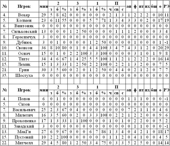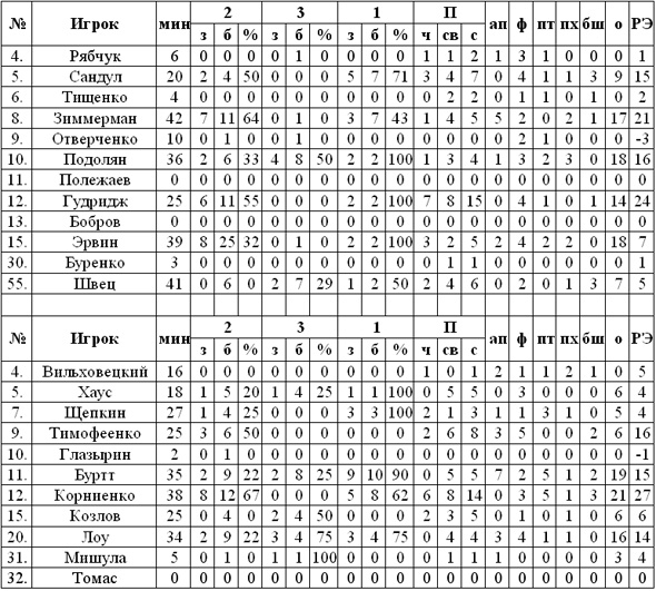 Столичный БК Киев сегодня принимал на своём паркете «Днепр», для которого это была первая игра в новом сезоне. Команды начали очень активно, с первых же минут каждый из соперников продемонстрировал своё желание победить, поэтому на протяжении первых десяти минут велась равная борьба, о чём свидетельствует счёт – 19:19. Во второй четверти игровой ритм абсолютно не изменился. В составе «волков» в первом периоде нахватал три фола Гудридж, поэтому Виталий Черний, дабы уберечь «большого» до более важного игрового отрезка, плотно усадил Вернона «на банку». Перевесом в борьбе под щитами мгновенно воспользовались днепропетровцы. Несколько подряд атак из-под кольца от Тимофеенко и Щепкина, а также точный дальний Козлова сделали счёт 24:29 в пользу гостей. В середине четверти буквально «взорвался» Подолян, отгрузивший в корзину соперника семь пунктов, поддержал Владислава и Зиммерман, отметившись данком, а вышедший со скамейки Гурдридж и вовсе вывел киевлян вперёд – 33:32. В раздевалки команды отправились при минимальном преимуществе БК Киев – 39:38. Третью четверть команды также начали в равной борьбе, то и дело, сменяя друг друга в роли лидера. В составе «Днепра» результативную игру демонстрировали Лоу и Буртт, но во второй половине четверти совершили рывок именно киевляне. Эрвин, подолян и Сандул создали небольшой задел в +6 очков перед четвёртым периодом. Имевшие такое преимущество «волки» едва не проиграли матч. Усилиями Буртта, а также тандема украинских баскетболистов Тимофеенко-Щепкин подопечным Журавлёва удалось вплотную подобраться к сопернику, а точный дальний бросок в исполнении Лоу за 10 секунд до конца и вовсе вывел «Днепр» вперёд – 69:71. Спасителем БК Киев стал Гари Эрвин, который реализовал свой проход под кольцо – овер-тайм. В дополнительной пятиминутке поймавшие кураж хозяева паркета оказались более удачливыми. Гудридж, который довольно долго играл на 4-х фолах, дважды подряд вколотил мяч сверху, но днепропетровцы не отпускали соперника. Стивен Буртт за минуту до конца дважды поразил корзину киевлян и сделал счёт 78:82 в пользу гостей, казалось, что тут-то подопечные Журавлёва не упустят победу, но сначала проход Зиммермана, а затем трёшка Швеца установили окончательный счёт матча – 83:82 в пользу БК Киев.