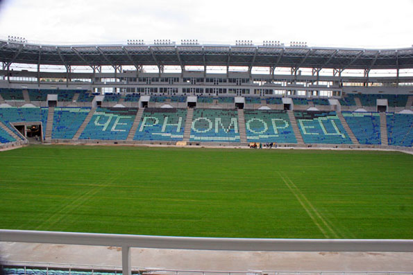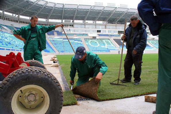 Вчера днем на строящемся стадионе в Одессе был уложен последний рулон нового
