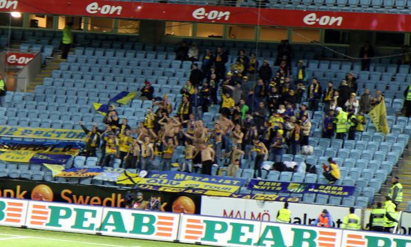Из пресс-ложи некоторые их песни больше походили на военные марши, в которых мелодия едва уловима. А вот мой коллега (у него, видимо, со слухом все в порядке:) разобрал среди слаженного звукового потока, исходящего от шведских фанов, перепетые песни Битлз и Стиви Уандера. И даже после финального свистка фаны не успокоились и продолжали горланить, уже, скорее всего, устраивая самим себе сеанс психотерапии. Интересно, что же вытворяют эти фаны, когда Мальмё выигрывает? Недаром один из украинских журналистов уважительно изрек, глядя на это действо: «Эта команда не заслуживет таких болельщиков!»