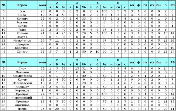 МБК Николаев сегодня в СК «Надежда» принимал команду, которая по-прежнему не имела на своём счету ни одной победы, в то время как в графе поражений у «Кривбассбаскета» красовалась цифра «6». В текущем сезоне «корабелы» уже не единожды проявляли «гостеприимство», отдавая в родных стенах командам первые победы в сезоне («Политехника», «Днепр»), поэтому проигрыш ещё и криворожцам мог свидетельствовать о некой негативной закономерности для николаевцев. Встреча началась в равной борьбе. После двух точно выполненных штрафных Макклинтоком, а также прохода под кольцо Хантера хозяева паркета повели в счёте 4:0, гости же ответили результативным броском Конева со средней дистанции. Первая четверть, по сути, превратилась в противостояние двух центровых – Макклинтока и Дэвиса, именно оба «бигмена» приносили львиную долю очков в копилки своих команд. Впервые выйти вперёд «Кривбассбаскет» сумел в середине первой четверти. После неудачного второго штрафного Кондратовца Игорь Кривцов удачно сыграл на добивании и отправил два очка в корзину соперника – 12:13. Ещё до конца первой десятиминутки лидер менялся несколько раз, но на перерыв команды ушли при счёте 22:24 в пользу гостей, Креншоу за 10 секунд до сирены отметился точным средним. Вторая четверть получилась довольно нервозной для обеих команд, множество игрового брака, неточных бросков сделали этот игровой отрезок наименее результативным. Команды шли «ноздря в ноздрю», но под занавес четверти данк Дэвиса и трёшка Кондратовца сделали счёт 32:36, николаевцы же ответили лишь точным штрафным Кривича. Что касается Игоря, то как для дебютного матча в цветах «корабелов» защитник продемонстрировал отличную игру. Кривич сходу влился в коллектив, несмотря на то, что его игровая форма явно пострадала за то время, пока он находился без клуба. После большого перерыва гости продолжали понемногу увеличивать разницу в счёте, а после двух очков Кривцова счёт стал 33:40 и показалось, что «Кривбасбаскет» сможет уйти в отрыв, тем более что игра хозяев паркета не выглядела уверенной. В защите «корабелы» часто не успевали за оппонентами, а лидер результативности Родни Грин то и дело ошибался и присаживался на скамейку запасных. Переломным стал момент, когда в середине четверти сначала Кривич отметился из-за дуги и сократил отставание до минимума, а затем Хантер в быстром отрыве забил сверху и снова вывел Николаев вперёд – 50:49. Перед заключительной десятиминуткой на табло горели цифры 56:52 в пользу муниципалов и вся борьба была ещё впереди. Своё веское слово в нужный момент сказал Грин. Именно Родни в двух атаках набрав два с фолом, дал толчок успешному рывку Николаева. Подхватил активную игру партнёра по команде и Хантер, который не только точно атаковал, но и сделал несколько действительно нужных подборов в защите. Попробовать спасти ситуацию попытался Сноу, именно его три попадания из-за дуги несколько раз возвращали интригу, но в концовке гости всё же дрогнули. Досадная пробежка Дэвиса за минуту до конца, а также поспешные дальние броски Мальчевского и всё того же Сноу окончательно лишили криворожцев шансов на успех. Тактика быстрого фола, которую попытались применить подопечные Чурсина, не дала нужного результата. Колмен и Хантер были точны с линии штрафных, установив окончательный счёт матча – 78:70 в поль