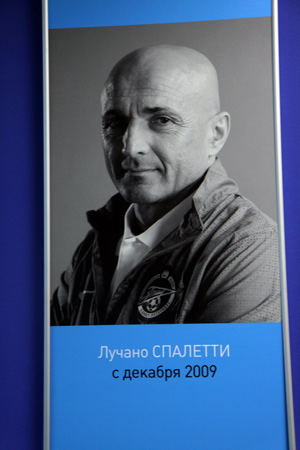 А вот персонал стадиона о своем имидже позаботился сполна. В зале для прессы журналисты могут оценить антураж чаши стадиона, познакомиться со всеми трофеями, завоеванными командой при помощи специальных фото на стенах, и увидеть на свои глаза всех тренеров, которые когда-либо руководили командой. Правда, с фамилией последнего из них, Лучано Спаллетти, у россиян возникла небольшая оплошность, которую Вы сможете определить по фото.