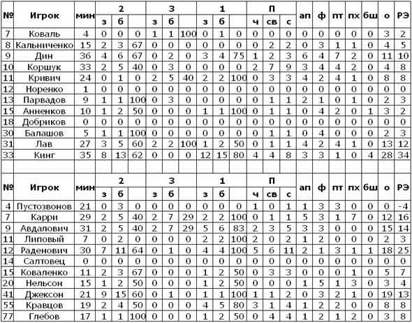 Вторым матчем игрового дня в Суперлиге стало противостояние «Будивельника» и «Днепр-Азота» в столичном СК «Меридиан». Команда из Днепродзержинска два дня уступила другой киевской команде – БК Киев, сегодня же в роли экзаменатора выступали подопечные Митровича. Гости начали первую четверть очень неплохо. Горбенко и Прингл уверенно вывели «Азот» вперёд, «трёхцветные» действовали довольно быстро, так что «строители» иногда просто не успевали за оппонентами. Похоже, что восстановился и вошёл в игровой ритм Майкл Фрейзер, канадец в первые минуты просто «замял» под кольцом Онуфриева и Анисимова, что также отразилось на счёте – 7:12. Привести «Будивельник» в чувства сумели замены, которые Митрович провёл в середине четверти. Вышедшие Забирченко и Алиевас существенно усилили игру «строителей». 4 подряд очка прибалта, а также дальнее попадание нашего сборника впервые в матче вывели киевлян вперёд – 14:12. После этого «гладиаторы» не сдавали лидерских позиций. Агафонов, Онуфриев и МакКлинтон постепенно увеличивали разницу в счёте, отчаянное сопротивление «Азота» в виде результативной игры Горбенко никак не давало возможности гостям переломить ход поединка. Джек МакКлинтон трижды был точен в своих атаках и в середине второй четверти счёт был уже 40:25 в пользу «Будивельника», но и на этом киевляне не остановились. Шехович и Анисимов до конца первой половины сделали +20 для своей команды. Вторая половина прошла в несколько другом игровом ритме, команда Митровича уже не действовала активно в атаке, а лишь удерживала созданное преимущество. Несмотря на проигранные заключительные две четверти, «строители» сохранили победный для себя счёт. Очередные два очка в копилке киевлян лишь укрепили позицию «Будивельника» на верхушке турнирной таблицы.