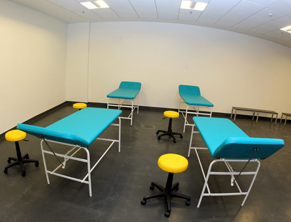 Переходим в другую часть комнаты. Перед глазами 4 массажные столы, кресла для массажистов. Для последних специально устроили также ячейки, где они, переодевшись, могут оставить свои вещи. В углу - холодильная камера для медицинских препаратов штатных врачей команд.