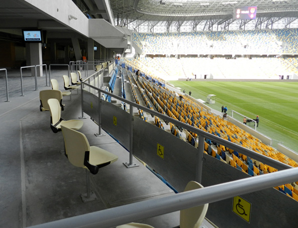 «Всего на стадионе устроено 7 медицинских комнат: 3 медпункты есть на променаде, которые непосредственно предназначены для посетителей арены, одна медицинская комната расположена на нулевом уровне восточной трибуны, еще один медицинский пункт расположен на четвертом этаже в VIP-секторе», - рассказал и. о. директора по строительству стадиона ГП «Захидинфрапроект» Владимир Онищук.