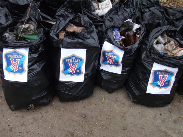 Весь мусор грузили в пакеты с эмблемами «Арсенала»