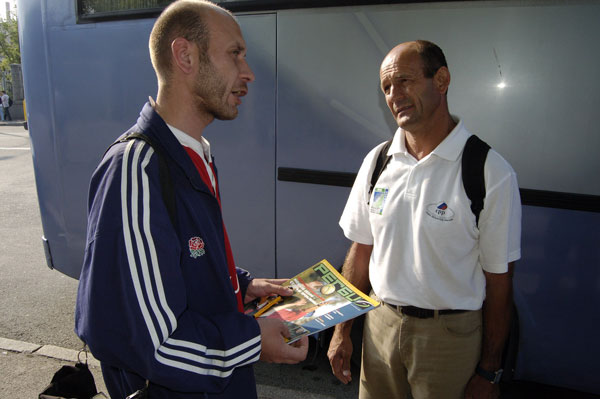 Матч пройдет на столичном стадионе "Спартак". В 8.00 поездом 1 (кстати, в "несчастливом", вагоне 13) в наш город прибыла сборная России - наш соперник. В гордом одиночестве регбистов из соседнего государства встречал исполняющий обязанности президента Федерации регби Украины Вячеслав Калитенко. Компанию в ранний час ему составили корреспонденты журнала "Регби" и сайта sport.ua Евгений Маевский и Андрей Шматов (фото - именно его).