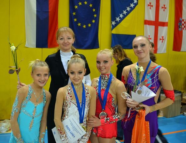 Альвина Якимец с ученицами - Дианой Балаклеетс, Викторией Ситниковой, Евгенией Климантовой и Анастасией Малой. Любляна-2011