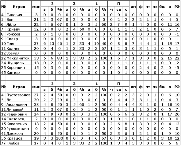 Главным противостоянием игрового дня в украинской Суперлиге стал матч в Мариуполе между «Химиком» и «Азовмашем». Хозяева паркета перед этим противостоянием испытывали ряд кадровых проблем: отсутствие Печерова, Ранчика, Криспина, Дроздова. Все эти игроки играют далеко не самые последние роли в команде Петровича, но сегодня в заявке «машиностроителей» было всего девять исполнителей. Несмотря на это, начало матча осталось за «бело-голубыми». Уже в середине первой четверти преимущество «Азовмаша», после дальнего броска Зайцева, достигло семи пунктов. Усилиями МакГи и Прокопенко «Химику» удалось подобраться к сопернику вплотную, но активная игра в концовке четверти Минарда и Кольченко завершила первую десятиминутку со счётом 25:12 в пользу хозяев паркета.