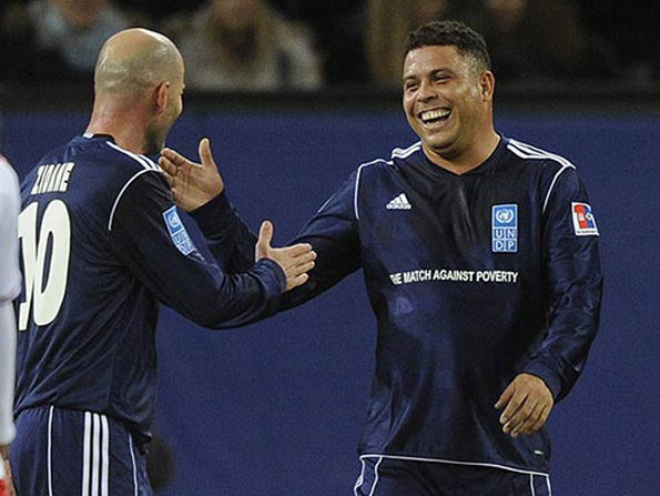 В одном составе с Зинедином Зиданом, Дидье Дрогба, Луишем Фигу и многими другими звездами Роналдо умудрился не только обыграть «Гамбург» (5:4), но и забить один из голов своей команды!