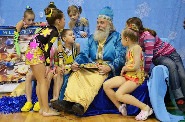 Ну, а як же турнір з художньої гімнастики, який відбувався в переддень Святого Миколая, без самого Чудотворця. Він обидва спортивні дні був завжди поряд із дівчатами, підтримував їхній дух та настрій, а коли якась із учасниць десь невдало виступила, то гіркоту помилок намагався присолодити солодощами. Для них він і розрадник, і головний суддя, для якого усі дівчата переможниці. Бо направду, художня гімнастика - спорт доволі суб’єктивний,тому далеко не результати,тим паче серед юних учасниць,є найголовнішими.