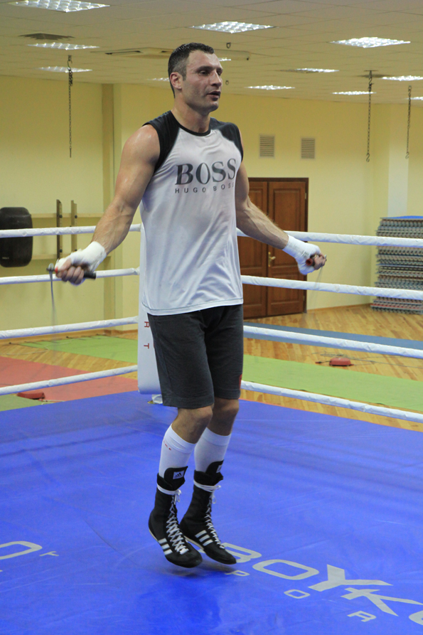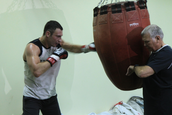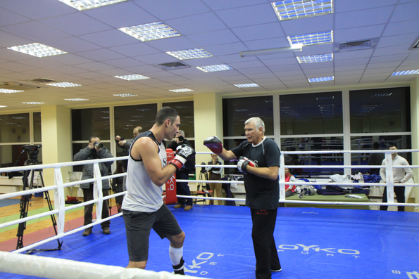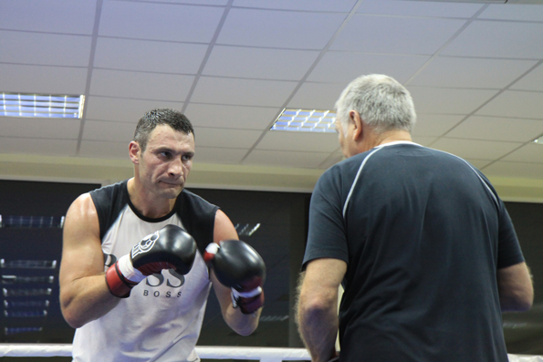 Виталий Кличко продолжает готовиться к бою против британца Дерека Чисоры. Поединок состоится 18 февраля, и пока чемпион мира по версии WBC оттачивает свое мастерство в тренировочном зале. Подготовка идет в Киеве, из-за занятости боксер пока еще не смог уехать в тренировочный лагерь в Австрийских Альпах, где обычно готовится к своим боям. Помогает Виталию его несменный тренер - Фриц Здунек. Под его чутким руководством накануне вечером украинский чемпион и провел открытую тренировку: