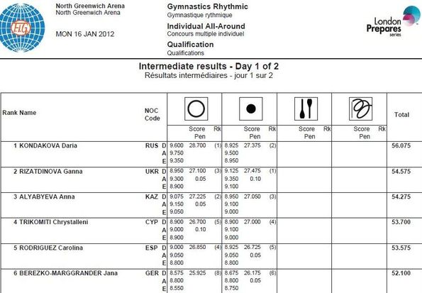 Результаты первого дня квалификации по художественной гимнастике на Олимпиаду-2012.