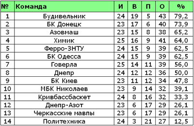 Будивельник: Алиев (5), Макклинтон (4), Морли (2 + 5 подборов + 4 потери), Агафонов (18 + 6 подборов), Анисимов (9), Шехович (17 + 7 подборов), Параховский (6), Буренко (6), Малыш (4), Забирченко (2),