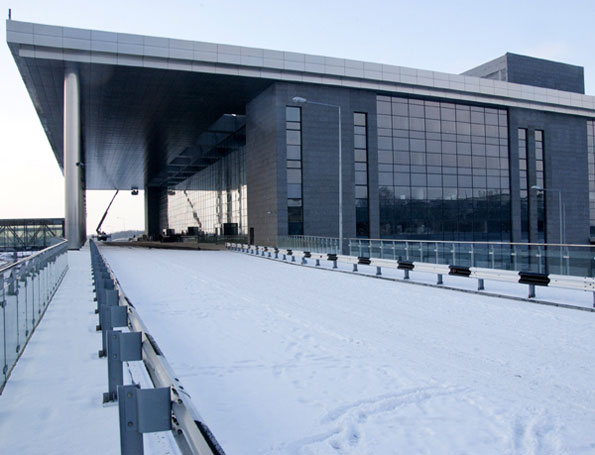 Кроме того, в полном объеме завершены монтажные работы основного технологического оборудования багажной системы. Все 24 лифта и 18 эскалаторов здания терминала смонтированы и находятся в рабочем состоянии после успешного проведения пуско-наладочных работ. Идет передача их эксплуатационным службам аэропорта. Смонтирована вся мебель в зоне регистрации пассажиров, а также ведется монтаж паспортных кабин.