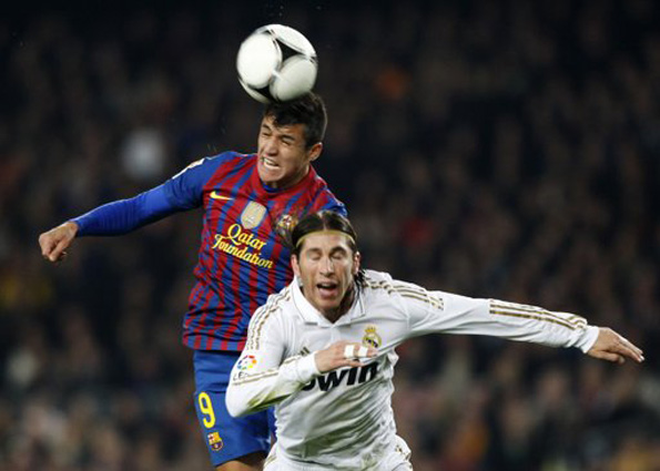 90 мин - Отличный момент у Барсы! Алвеш подал справа и Педро пробивал с 10-ти метров головой! По центру ворот - Касильяс на месте!