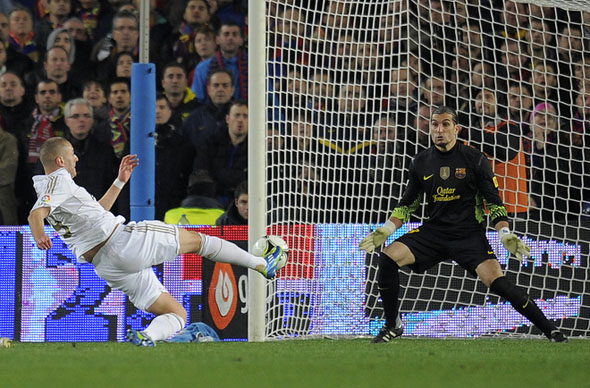 «Реал» продолжил давить и вновь заставил соперника ошибиться. Пике невесть как выбил мяч, круглого перехватил Кальехон, пас на Бензема и Карим, обыграв Пуйоля, пробил кипера «Барселоны». И возвратил интригу!!!