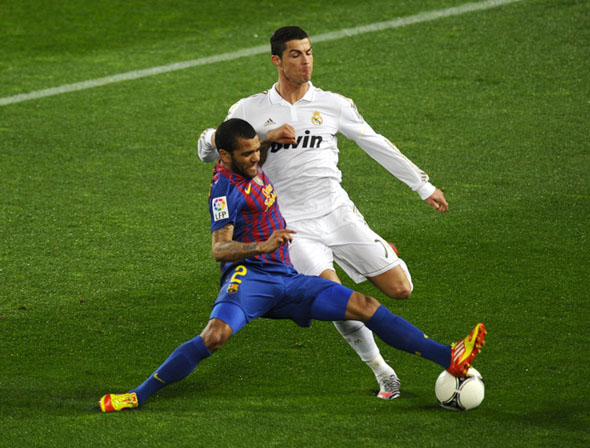 Отыграть такое преимущество «Барселоны» виделось невозможным. И в начале первого тайма сложилось впечатление, что этого и не случится. Каталонцы почувствовали свободу действий и принялись играть в привычный для себя футбол. Контроль мяча, игра на атаку, хорошие командные действия. Ведь срабатывает в Примере. Вот только с «Реалом» получилось не совсем так, как задумывалось. Мадридцы отдали инициативу, или скорее затаились. Ждали пока Моуриньо вынет из рукава свои козыри, коими стали Карим Бензема и Хосе Кальехон. Второй уже через минуту после появления на поле пытался замкнуть передачу от Арбелоа, но сделал это крайне неудачно. В этом моменте вновь дал себя обыграть Пике, не успел на подстраховку Пуйоль, а «сливочные» еще раз убедились, где она та самая щель. И минуту спустя сполна воспользовались приобретенным опытом. Месут Озил выдал красивую и самое главное точную передачу на Роналду. Криштиану легко ушел от Пуйоля, хладнокровно обыграл и Пинто – 2:1.