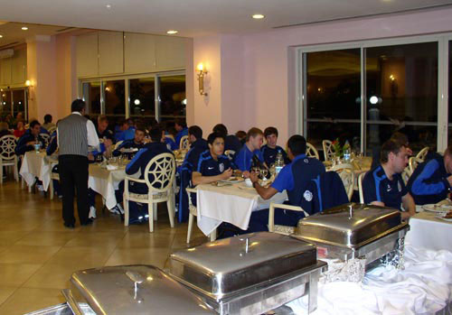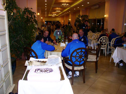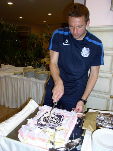 Администрация гостиничного комплекса «Starlight» решила преподнести нашей команде сюрприз, и к сегодняшнему ужину кондитеры ресторана изготовили специальный торт, на котором красовалась эмблема ФК «Черноморец».