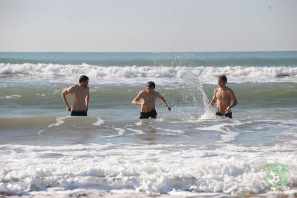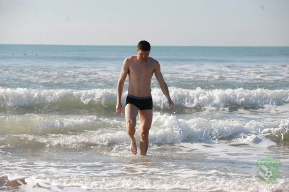 Вовсе не о моряках дальнего плавания хотим поведать вам. После всякого тренировочного занятия по рекомендации медицинского аппарата команды все ребята проходят определенную цепочку восстановительных процедур. Чтобы моментально, как рукой, снять усталость одним достаточно просто по пояс залезть в холодный бассейн, у других – не остановить желания хотя бы на пару-тройку минут окунуться в далеко не июльские воды Средиземноморья. Некоторые по очереди прибегают к тому и к другому. Температура воды в море сейчас около +18 градусов, в искусственном бассейне перед отелем ниже как минимум градусов на шесть-восемь. Веселая компания в составе Евгения Селина, Романа Безуса и Дмитрия Есина была настигнута фотографом пресс-службы аккурат во время прохождения того, что доктор прописал. За порядком, словно капитан на мостике, следил тренер Иван Балан. Он-то сам уже не один десяток лет среди молодежи пропагандирует водные процедуры. На берегу в это время со стороны наблюдали за всем футболисты и тренеры узбекского Насафа - сегодняшние оппоненты Ворсклы в контрольном поединке. Настроение полтавских футболистов и все соблюденные режимы восстановления предполагают хорошую готовность к заключительному спаррингу второго этапа зимних учебно-тренировочных сборов.