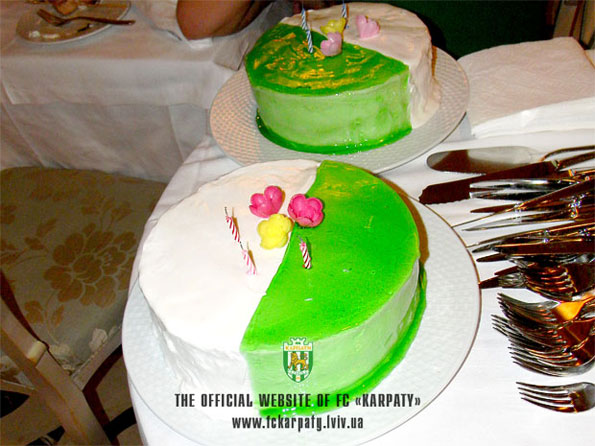 Вечір художньої самодіяльності Ерік продовжив і в готелі. Саме він, за традицією, став солістом під час виконання Многая літа на честь одразу двох іменинників: Ігоря Худоб’яка та Ярослава Мартинюка. Кожному з них було подаровано по торту з шаром зелено-білого желе. До вітань та побажань футболістам доєднався і Інформаційний центр ФК «Карпати»: хлопці, без травм у футболі та з любов’ю по житті...