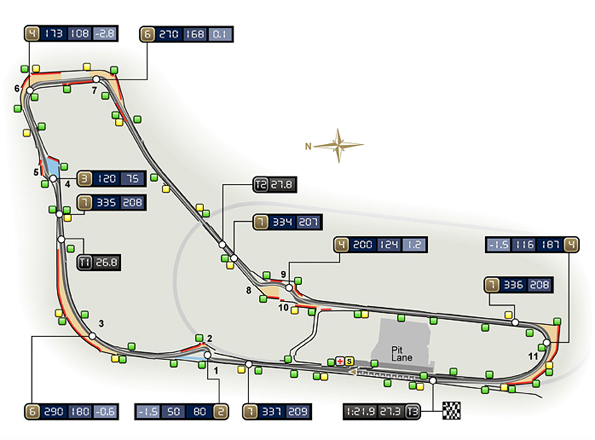 Дебютувавши два роки тому, корейський автодром залишає вкрай неоднозначну реакцію як серед уболівальників, так і серед самих учасників змагань. Інфраструктура внаслідок фінансової кризи так і не була завершена ані дебютного року, ані минулого. Черговий тількедром, закручений проти годинникової стрілки, подарував цікаву видовищну гонку під дощем і абсолютно ніяку та безлику в сухих умовах. Кільце є комбінацією прямих і поворотів різної складності,тут навіть є поворот з подвійним апексом – 11-й. Налаштування машини потребує традиційного компромісу між притискною силою в поворотах та максимальною швидкістю на довгих прямих. Траса запрошує обганяти у 1-му, 3-му та 4-му поворотах, але дві абсолютно різні гонки так і не показали наскільки цікавим може бути боротьба в Йонамі.