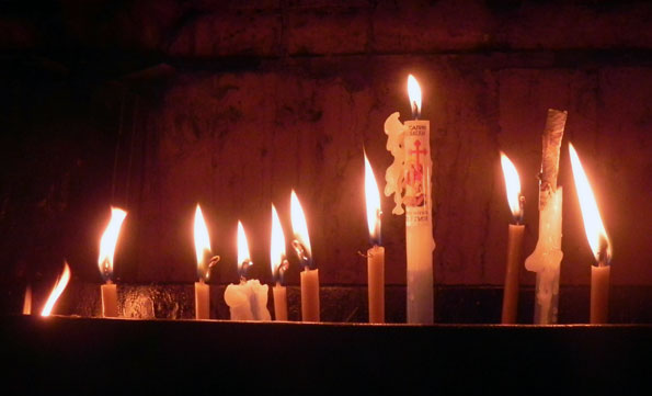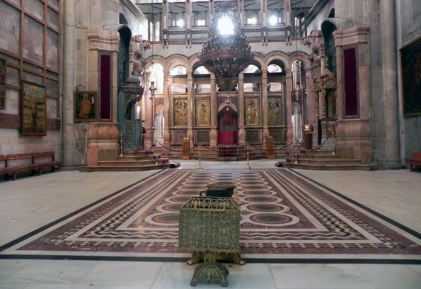 Нам удалось попасть в Храм Гроба Господня ранним утром, когда туристов было еще совсем немного. Посещение главной святыни христианского мира происходит по принципу конвейера: зашла внутрь партия из четырех человек – помолилась минутку – зашли следующие. А иначе никак, ведь реликвию ежедневно желают лицезреть тысячи посетителей. Фотографировать можно везде и сколько угодно, никто и слова не скажет. А вот с местными торговцами нужно быть осторожными: мало того, что за сувениры дерут втридорога, так еще и норовят всякую бесполезную, но недешевую мелочь втюхать. Например, «оливковую ветвь из Гефсиманского сада» за пять долларов. Все бы хорошо, но единственное отношение этих веточек к самому саду только в их принадлежности к виду Olea europaea. В самом же саду растут всего восемь олив, возраст которых, по некоторым данным, превышает 2000 лет. Выглядят они и впрямь на два тысячелетия, если не больше, очень уж старые, с толстенной грубой корой. Неужто они и впрямь были свидетелями молитв Иисуса Христа? И уж конечно обрывать с них веточки никак не разрешается.