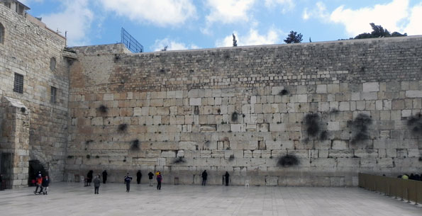 Несмотря на середину недели и начало рабочего дня, у Стены Плача немало желающих помолиться и оставить записку с просьбой к Всевышнему. Причем даже мужчины – неевреи обязаны подходить к Стене с покрытой головой, кипу напрокат можно получить тут же. Незамужние женщины обязаны покрывать плечи, замужние – голову. При этом мужчины молятся с левой стороны стены, а женщины с правой.