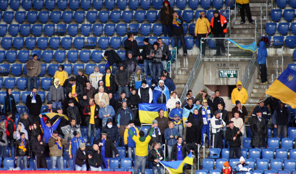 К поединку взрослых сборных на стадион подтянулись болельщики, но до стопроцентного заполнения трибун все-таки оказалось далеко. Зато начали матч фанаты сборной Израиля очень активно, почему-то сходу использовав один из зарядов сербских «гробарей»! Сборная Украины не осталась без поддержки, немалая группа наших фанатов активно болела за «сине-желтых», временами даже перекрикивая хозяев. Поле после матча молодежных сборных оказалось совсем не таким «убитым», как можно было предположить, и хотя Олег Блохин на послематчевой пресс-конференции пожаловался на качество газона, наши футболисты после игры подтвердили, что проблем с покрытием у них не было.